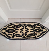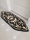 اینمحصول به شیوه تافتینگ سفارشی و نیمه دستی بافته شده است که حالت سنتی بودن و دست باف بودن را تداعی می کند